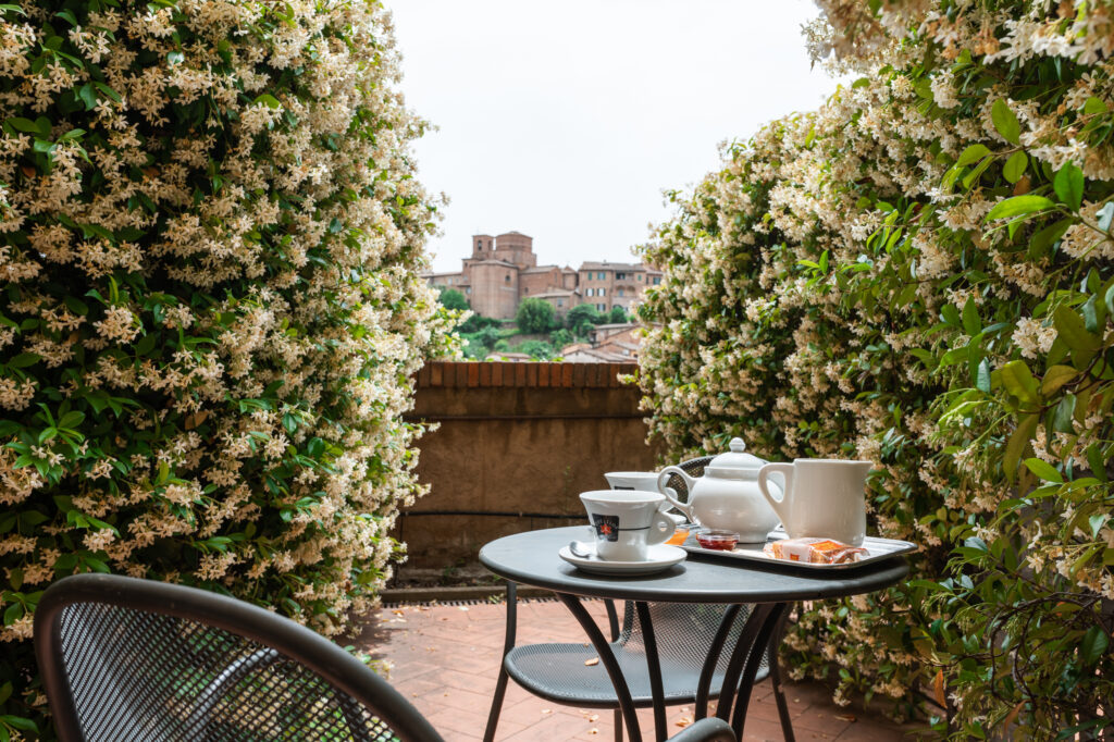 - Giardino Panoramico: come accennato, il Minerva vanta un giardino terrazzato affacciato sul centro storico. È il posto ideale per fare colazione all’aperto, ma anche per rilassarsi durante il giorno su una panchina al sole, con vista sui campanili di Siena. Alcune camere hanno accesso diretto verso l’area giardino. In estate si possono organizzare piccole degustazioni all’aperto o semplicemente godersi un po’ di verde e tranquillità dopo tanto camminare in città.